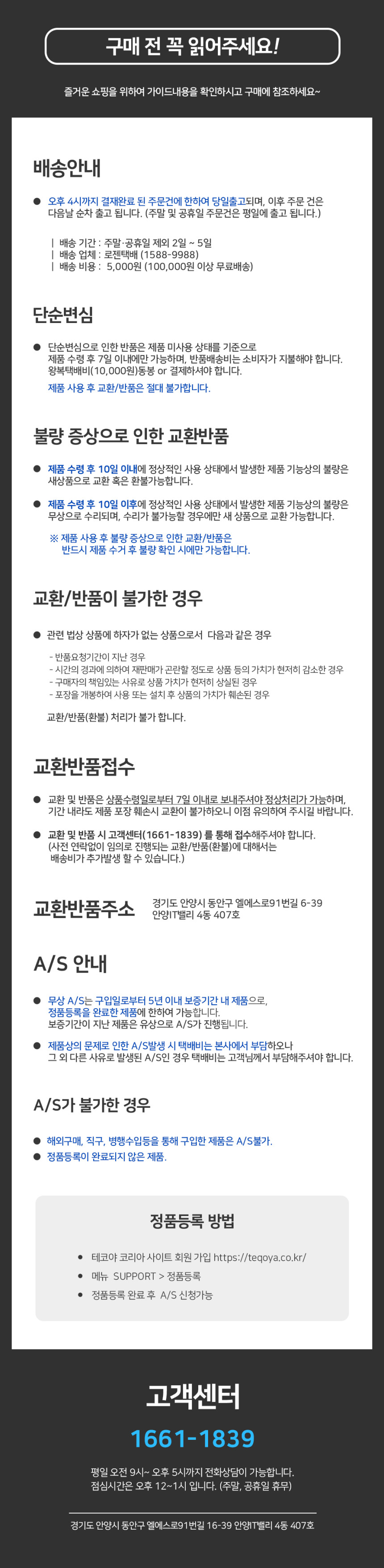 반품 주소 ㅣ 경기도 안양시 동안구 엘에스로91번길 16-39(안양IT밸리) 4동 407호 (우 :14119)